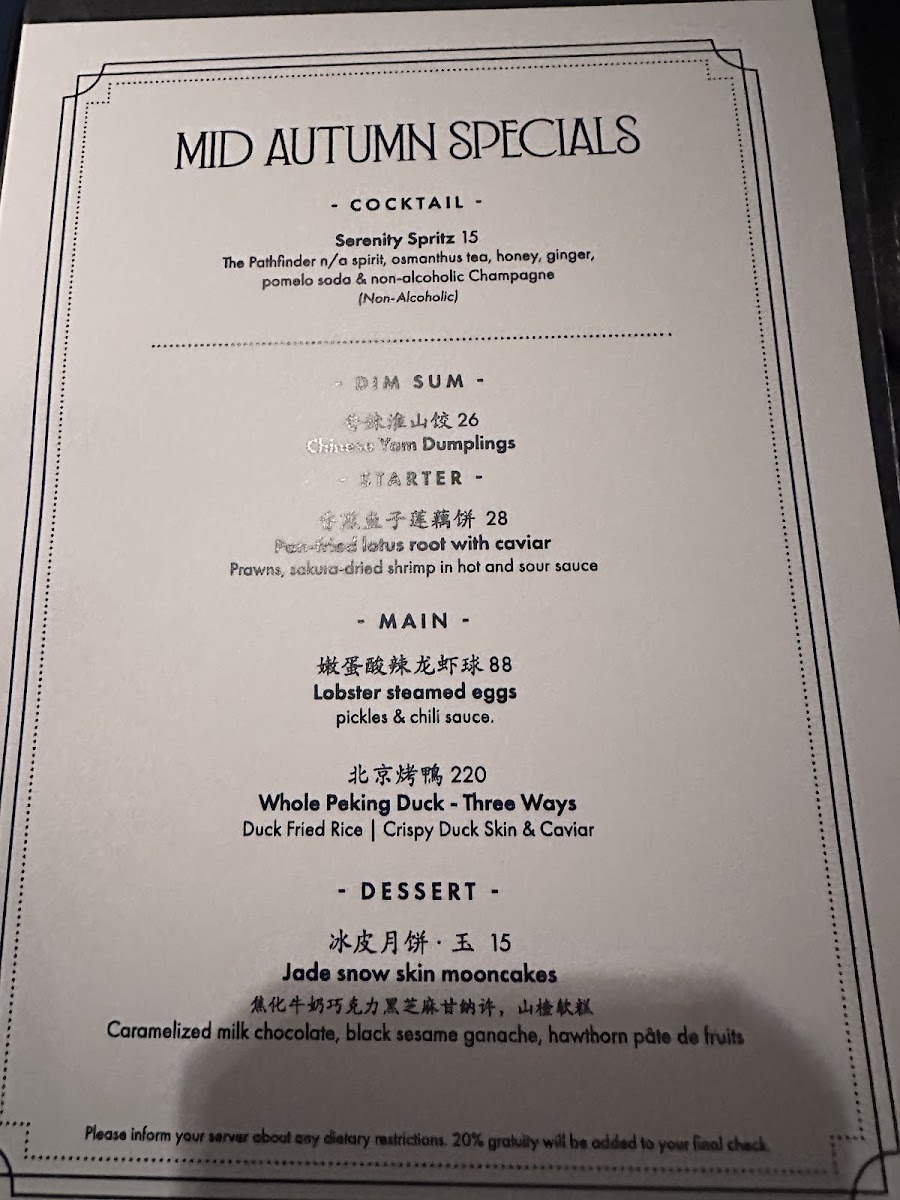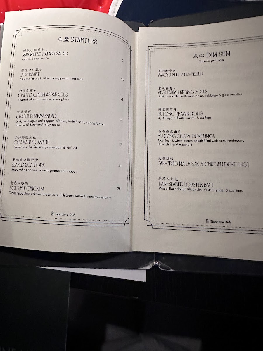 The first thing that grabs you is the range. From fiery Red Lantern crispy soft-shell crab to delicate dim sum that arrives steaming and fragrant, every dish feels thoughtfully crafted. Then come the signature flaming Peking duck and perfectly spiced lamb chops, each plated with style but rooted in tradition. Even the vegetable dishes hold their own, layered with garlic, chili, and that unmistakable wok-fired aroma.